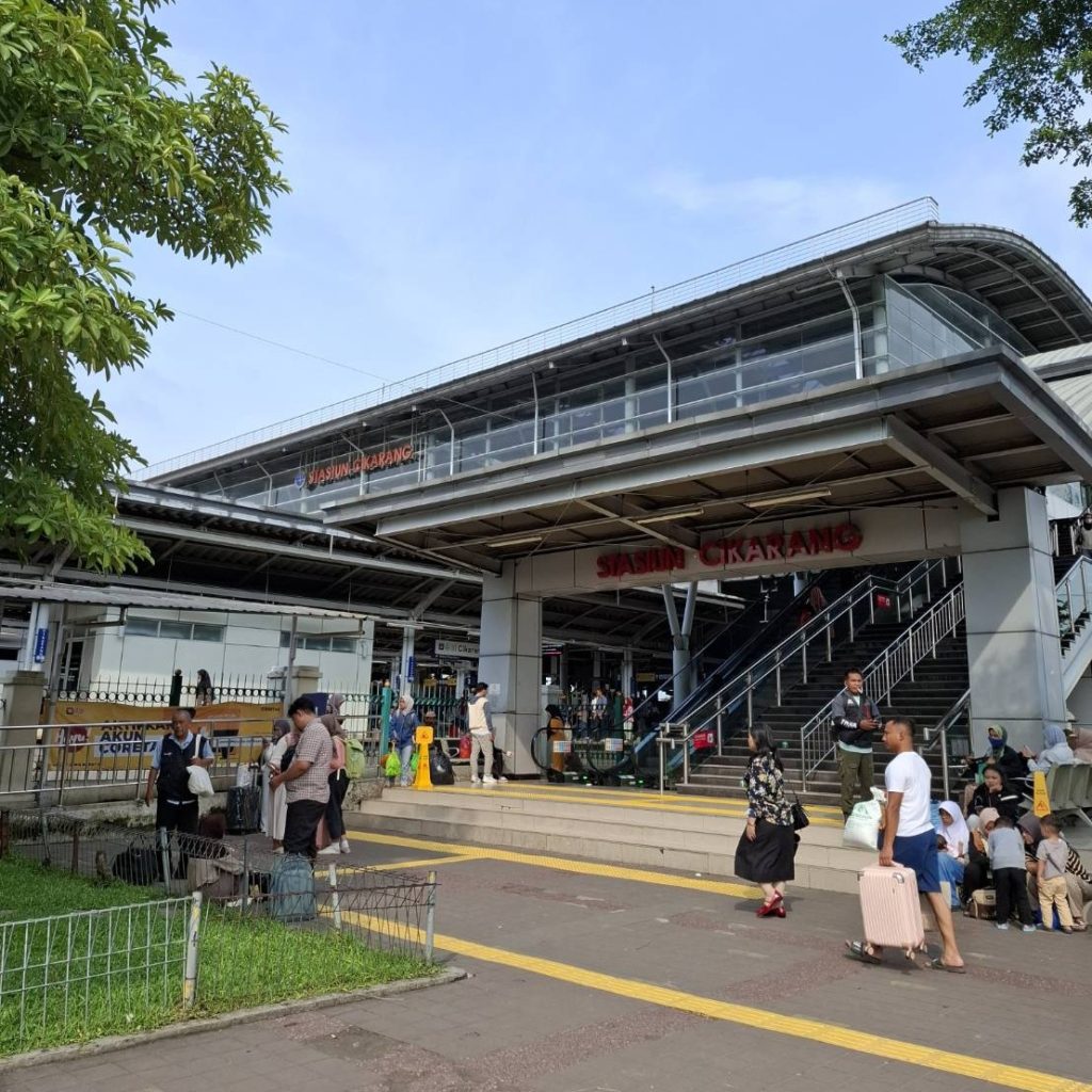 「チカラン駅」外観。今回は電車で行きました。経費で行くので節約・・時間は7時間ぐらいかかりますが。しかも弊社事業所からこの駅まで車で1時間ぐらいかかりますし、移動日と割り切るしかないですね。